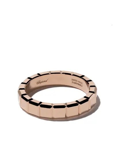Chopard’s ‘Ice Cube’ collection comprises of meticulously crafted faceted squares reflecting the geometry of glistening ice cubes, channelling cool elegance with a contemporary edge. This ethically certified “fairmined” 18kt rose gold Ice Cube ring from Chopard boasts an androgynous design and features square facets that flash glints of light like reflections of fresh ice. Wear on its own or pair with other rings from the collection for a dazzling stacked look. This Chopard product is made of 100% Ethical Gold, acquired from responsible sources and verified against international best practices on environmental and social standards.