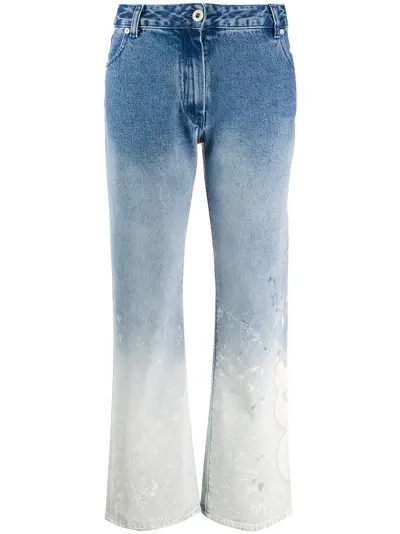 Fashion changes, jeans are eternal. Case on point: these washed blue and white cotton bleach effect straight jeans from Off-White. It's time to make a day to remember. Featuring belt loops, a front button fastening, front pockets, back pockets, distressed effects and a slightly cropped style.