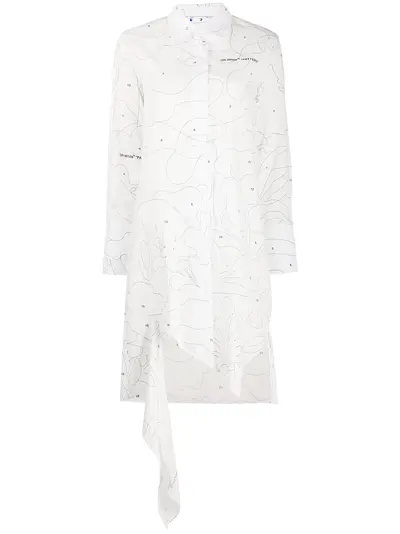 Let's get nostalgic. This white cotton Puzzle shirt dress from Off-White is decorated in a colour by numbers pattern so you can let your mind get creative. Who said shirts were boring? Featuring a classic collar, a front button fastening, long sleeves, an all-over print, an asymmetric hem and draped details.