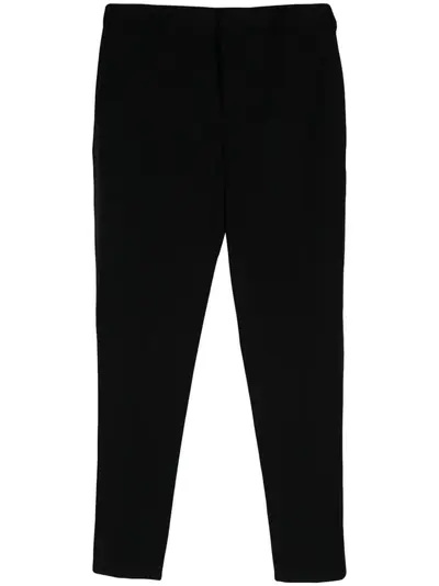 black wool high-waisted belt loops concealed front fastening two rear button-fastening pockets slim cut