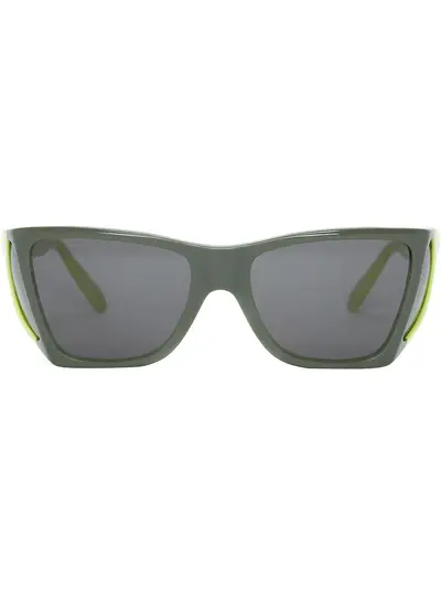 dark green/light green acetate/glass rectangle frame tinted lenses two-tone design shield frame straight arms logo-engraved arm curved tips UV-protective lenses These glasses come with a protective case.