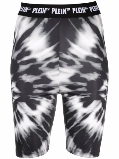 black/white tie-dye pattern logo waistband high waist super-skinny cut ankle-length