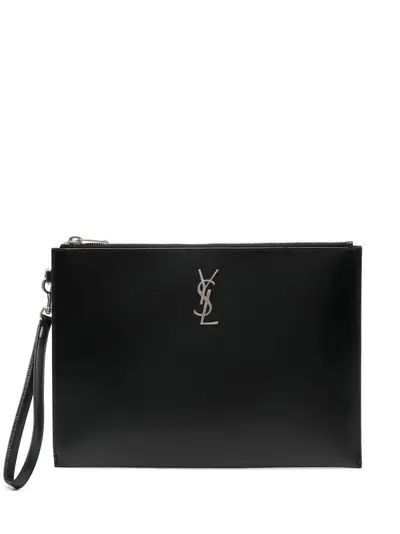 black calf leather smooth grain signature Cassandre logo plaque top zip fastening detachable wrist strap main compartment multiple internal slip pockets internal card slots full lining silver-tone hardware This piece comes complete with a protective dust bag.