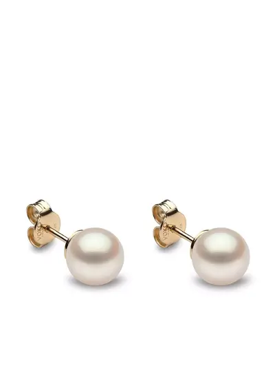 18kt yellow gold butterfly fastening stud design freshwater pearls for pierced ears These earrings come as a pair. Pearls should be the last thing that you put on in the morning and the first thing you take off at night. Avoid contact with perfumes or creams, and simply wipe with a soft cloth to clean.