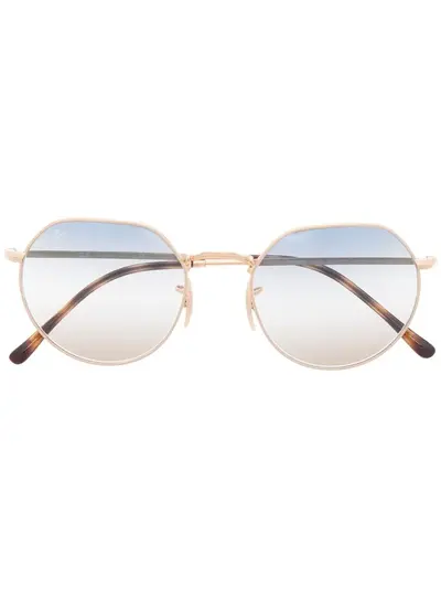 gold tortoiseshell effect round and hexagonal frames gradient lenses blue tinted lenses straight arms curved tips We know you'll look after them, but these glasses come with protection, just in case. All glasses from FARFETCH are sold as non-prescription frames.