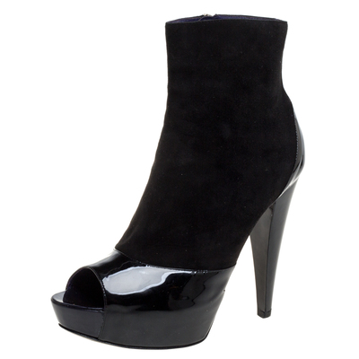 Sergio Rossi Black Suede And Patent Leather Peep Toe Platform Booties Size 39.5 356081 (чёрный, lpn14360059)