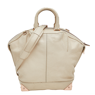 Well structured and high on style, this satchel from Alexander Wang deserves to be yours. It has been crafted from cream colored leather and is designed with two handles and a shoulder strap. The fabric interior has enough space to fit your essentials. Complete with rose gold tone hardware, this creation is ideal for all your regular outings.