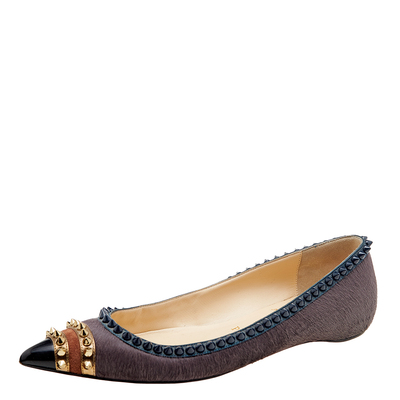 Christian Louboutin Multicolor Calf Hair And Suede Spiked Malabar Hill Ballet Flats Size 38 612722 (lpn14379191)