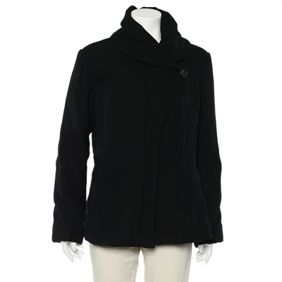 Giorgio Armani Black Quilted Oversized Collar Zip Front Jacket XL 613394 (чёрный, lpn14379392)