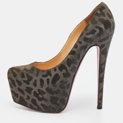 Take your love for Louboutins to new heights by adding this gorgeous Daffodile pair to your collection. The pumps speak of high fashion in every stitch and curve. The exterior is made from metallic fabric and is finished with concealed platforms, 15.5 cm towering heels, and instantly recognizable red soles.