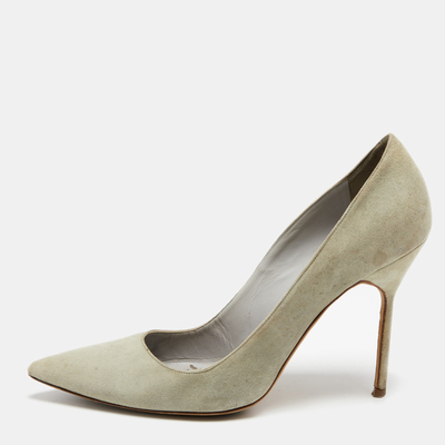 Put an end to your fashion woes away by lending this pair of Manolo Blahnik pumps a space in your closet. They come in the mint green shade with pointed toes and 10.5 cm heels. Youre sure to feel your best while going about in this pair of classy pumps by Manolo Blahnik