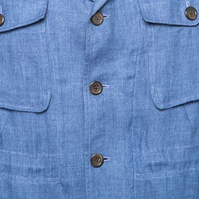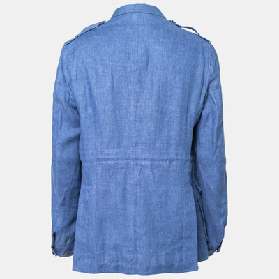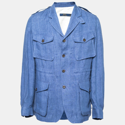 Add this Polo Ralph Lauren jacket to your wardrobe for a stylish upgrade. It has a mesmerizing blue shade and is made using linen. It is complete with multiple pockets, front buttons, and a collar.