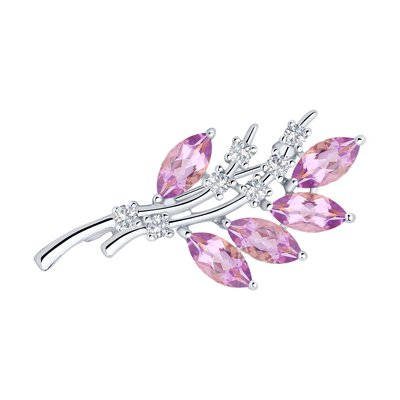 Серебряная брошь в виде веточки – изящный аксессуар и оригинальный подарок. Особую выразительность украшению придают сияющие фианиты – словно звёздочки, спустившиеся с неба и украсившие деревце. Листочки-аметисты навевают чудную атмосферу весны с её ароматными кистями сирени… Маленький шедевр ювелирного искусства украсит самое скучное пальто, однотонное платье или даже сумку.