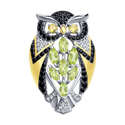 Брошь Sokolov из золочёного серебра с хризолитами и фианитами 4061771526 (lpn15726518)