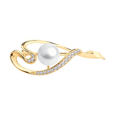 Позолоченная брошь с жемчугом и фианитами Sokolov 4065103680 (lpn15726852)