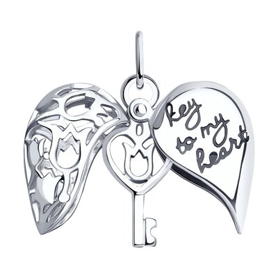 Каждая девушка мечтает о необычном знаке внимания. Серебряная подвеска в виде ключика от сердца, несомненно, будет оценена по достоинству. Ажурная половинка кулона, нежные слова любви и классическая символика самых тёплых чувств расскажут о том, что таит ваше сердце. Для создания интересного образа носите кулон на длинной цепи и дополняйте другими аксессуарами.