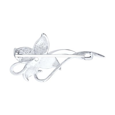 Намёк на самый утончённый вкус – серебряная брошь в виде цветка с фианитом. Сияние камня усилено в металлических отблесках лепестков. Плавность линий стебля и бутона передана с необыкновенной выразительностью. Лёгкая и изящная брошь украсит блузу, платье или жакет, тканевую сумку или однотонный вечерний клатч.