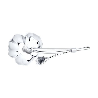 Яркая и в то же время очень утончённая серебряная брошь в виде мака, украшенная прозрачной красной эмалью и чёрным жемчугом гармонично дополнит любимый жакет, рубашку, пальто или головной убор. Этот женственный драгоценный аксессуар понравится тем, кто ценит лаконичные детали в образе.