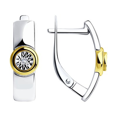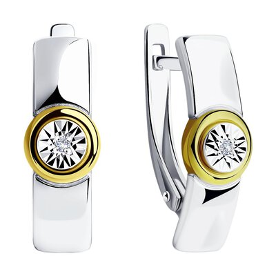 Элегантные серебряные серьги с бриллиантами – пример того, как современная классика легко вписывается в тренды. В этой модели дизайнеры отдали честь модному минимализму и гармонии геометрических форм. Другая особенность – эффектный контраст металла тёплого и холодного оттенков. Рельефный каст акцентирует бриллиант и визуально его увеличивает. Благодаря лаконичному дизайну украшение окажется уместным в любом образе.