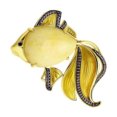 Брошь Sokolov из золочёного серебра с янтарём и фианитами 2461300991 (lpn15734751)