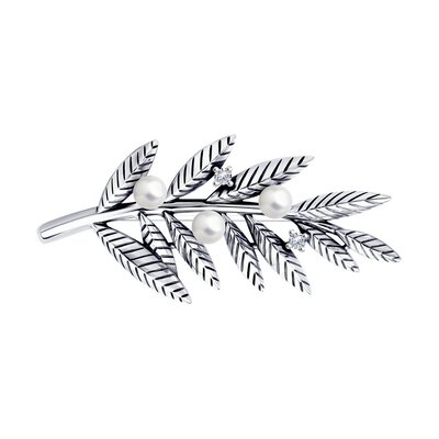 Брошь Sokolov из серебра с жемчугом и фианитами 3791015669 (lpn15737703)