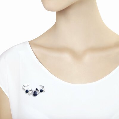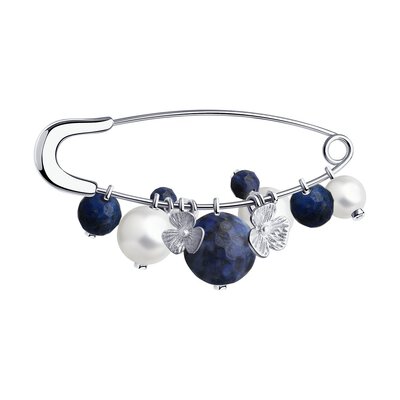 Брошь Sokolov из серебра с содалитом и синтетическим жемчугом 1705060498 (lpn15743087)