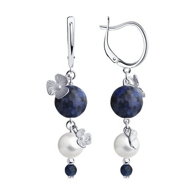 Серьги Sokolov из серебра с содалитом и синтетическим жемчугом 611336505 (lpn15743089)