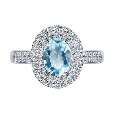 Кольцо Sokolov из белого золота с бриллиантами и аквамарином 2907560910 Sokolov (lpn15750624)