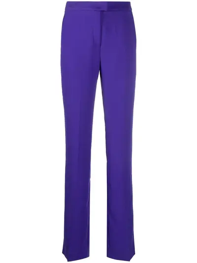 purple tonal design concealed front fastening straight leg tailored cut rear welt pocket
