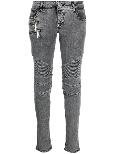black logo patch to the rear classic five pockets concealed front button fastening panelled design low-rise skinny cut