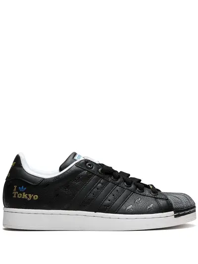 Supplied by a premier sneaker marketplace dealing with unworn, already sold out, in demand rarities. Each product is rigorously inspected by experienced experts guaranteeing authenticity. Take a trip to Tokyo without leaving your seat. With these black leather Superstar 2 City sneakers from adidas, you can have the best of both worlds. Classic Superstars meets 'I love Tokyo' prints. Featuring a round toe, a lace-up front fastening, a signature three stripe detail and a flat rubber sole. POSITIVELY CONSCIOUS: Adidas Group scores 4 out 5 by independent ethical brand rating agency Good On You. It uses eco-friendly materials in many products - 100% of its cotton is from sustainable sources and it's committed to use 100% recycled polyester by 2024. It traces and audits almost all of its supply chain to ensure good labour standards, and has committed to reduce carbon and water stress across its whole supplier base.