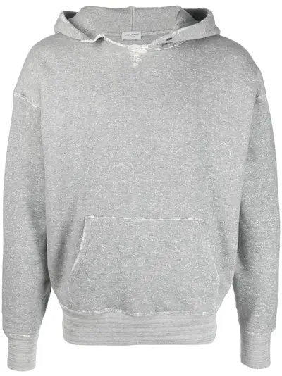 light grey cotton jersey fleece distressed finish classic hood long sleeves front pouch pocket ribbed trim