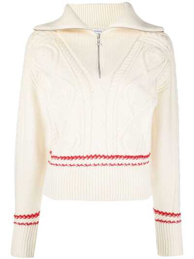 white wool cable knit quarter front zip fastening ribbed trim long sleeves stripe trim