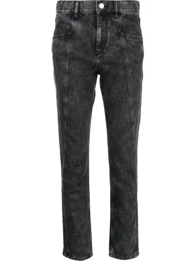 faded black cotton tonal stitching belt loops front button and zip fastening straight leg classic five pockets cropped leg