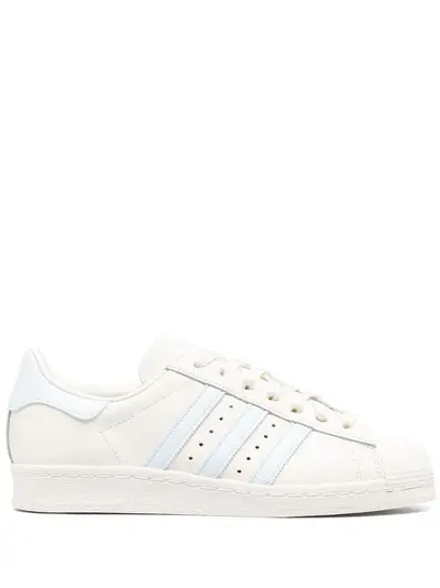 white sky blue calf leather round toe front lace-up fastening signature 3-Stripes logo perforated detailing contrasting heel counter logo-print tongue branded heel counter branded insole flat rubber sole