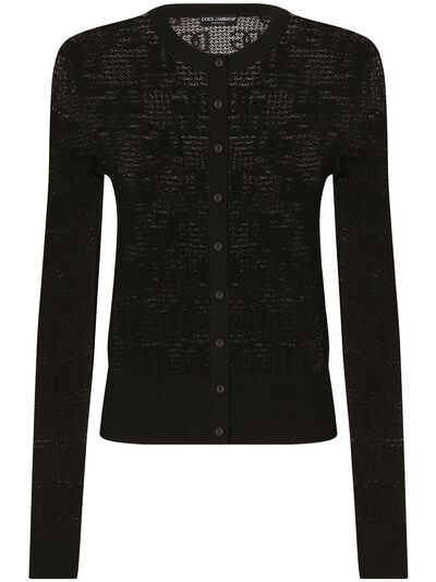 jacquard logo cardigan from DOLCE & GABBANA featuring black, jacquard logo motif, knitted construction, crew neck, front button fastening, long sleeves and ribbed trim.