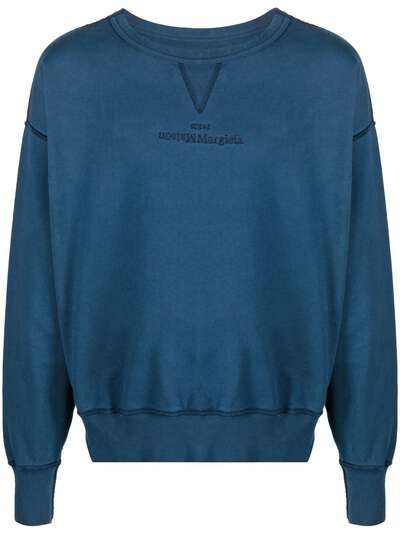 navy blue cotton ribbed detailing embroidered logo to the front round neck long sleeves straight hem When buying this unisex item, keep in mind that it is graded in standard men's sizing.