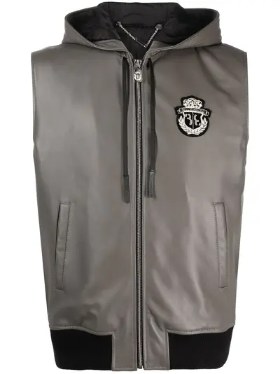 battleship grey sheepskin logo patch at the chest classic hood front zip fastening sleeveless straight hem