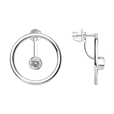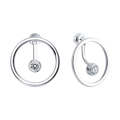 Оригинальная конструкция этих серёг-джекетов позволяет комбинировать их с любыми образами – современный кэжуал, коктейльный или вечерний выход. Благородный блеск серебра в сочетании с фианитами вызовут восторг и восхищение. Подвески с камнями можно снять и носить эти серьги как лаконичные пусеты в форме элегантных кругов.