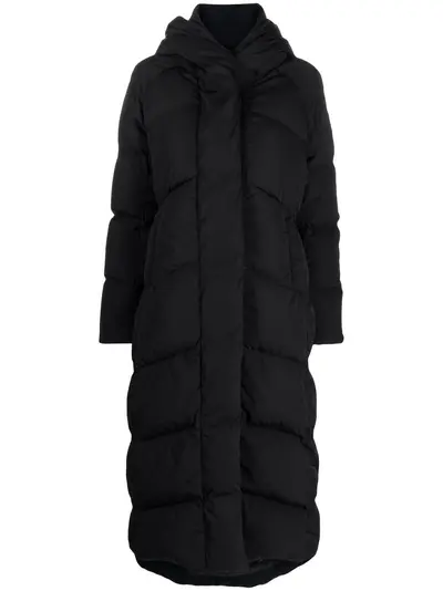 black duck feather padded design logo patch at the sleeve front zip fastening long sleeves two side inset pockets mid-length