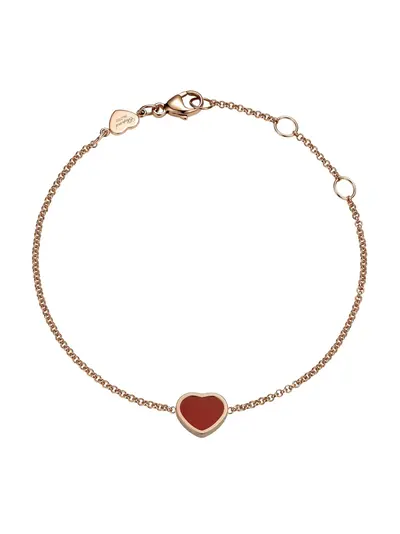 18kt rose gold My Happy Heart carnelian bracelet from Chopard featuring 18kt rose gold, carnelian, heart charm, delicate chain, lobster claw fastening and adjustable fit. . .