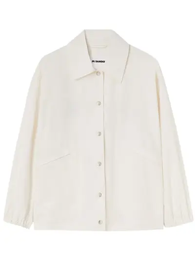 white/black cotton logo print to the rear classic collar front press-stud fastening long sleeves elasticated cuffs two front patch pockets elasticated hem