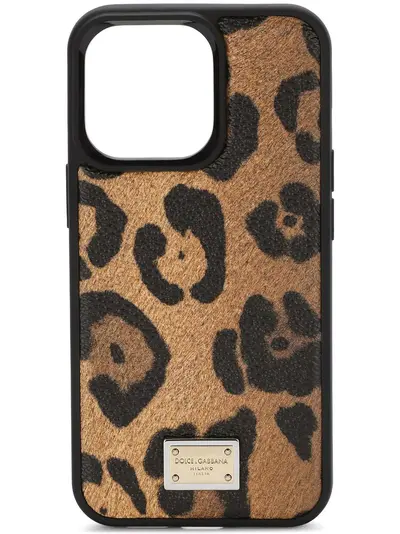 brown all-over leopard print gold-tone logo plaque suitable for iPhone 13