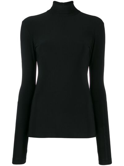 Black slim-fit turtleneck top from Norma Kamali featuring a slim fit, a concealed rear zip fastening, a turtle neck and long sleeves.