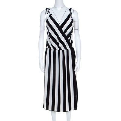 A stylish statement dress by Marc Jacobs is just what you need. This monochrome striped midi dress is tailored from durable fabric blend. With a shoulder tie up detail and plunge neckline, it is just perfect. Team it with yellow sandals and silver tone accessories for a much chic look.