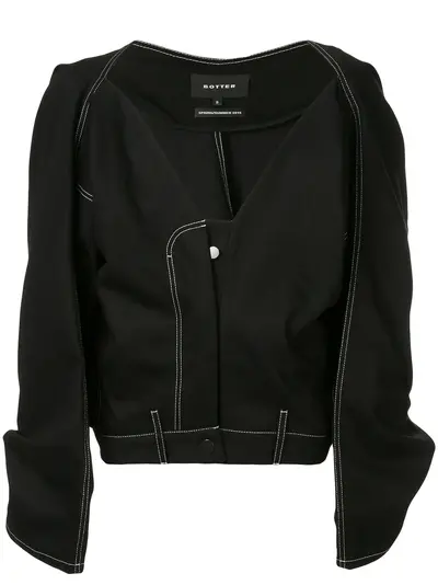 Black cotton Botter jacket from Botter featuring a front fastening, long wide sleeves and a v-neck.