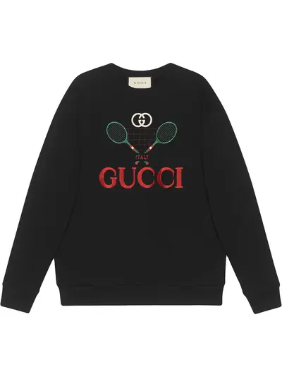 You play tennis twice a week, in the best club in town - Gucci's club. And every single time, after the training, you take a selfie to show the world your favourite sweatshirt. #matchpoint Featuring a crew neck, long sleeves, a ribbed hem and cuffs and an embroidered design.