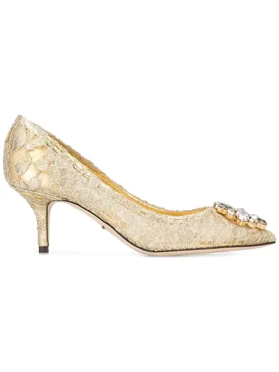 The X usually marks the spot where the treasure is. But when it comes to these Dolce & Gabbana pumps, there's no need for you to look further or to dig, for that matter. Ready to strike gold? Featuring a pointed toe, crystal embellishments, a kitten heel and a branded insole.
