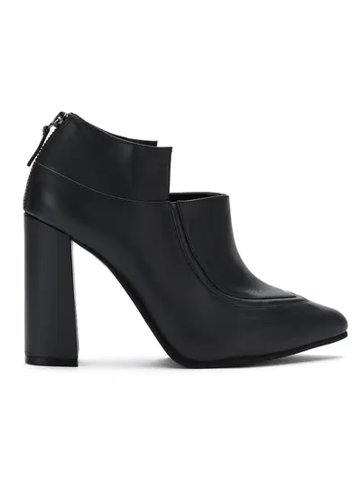 Navy panelled leather boots from STUDIO CHOFAKIAN featuring a pointed toe, contrasting panels, a rear zip fastening and a high block heel.