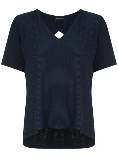 Navy 'Camino' t-shirt from Olympiah featuring a v-neck, short sleeves and a straight fit.